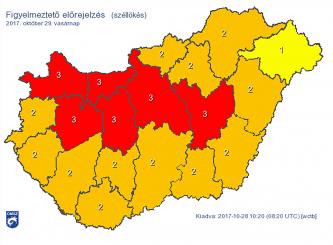A fél országra riasztást adtak ki a viharos szél miatt - Borsodban a várt legerősebb széllökések meghaladhatják a 70 km/h-t.