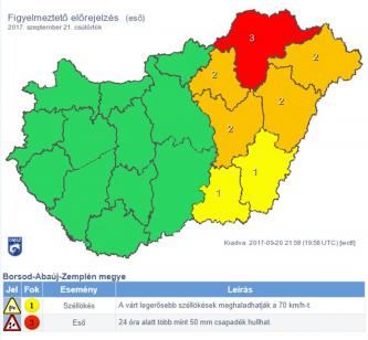Vörös riasztás! - Nagy esők jönnek, csütörtökön több mint 50 mm csapadék eshet Borsodban