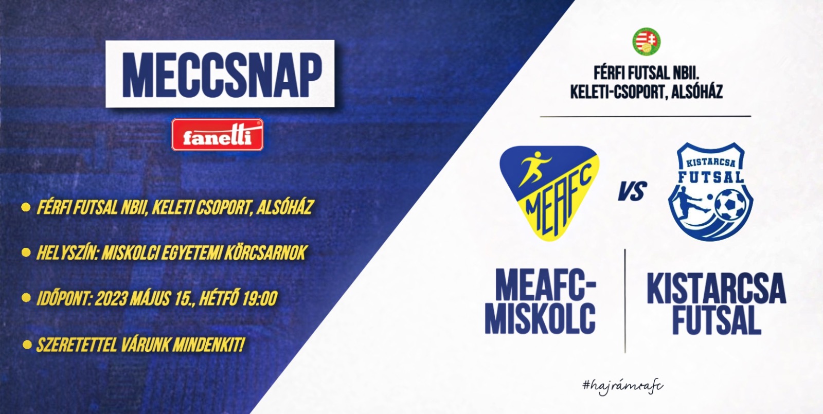 FUTSAL: Hétfőn este a Kistarcsát fogadja a MEAFC