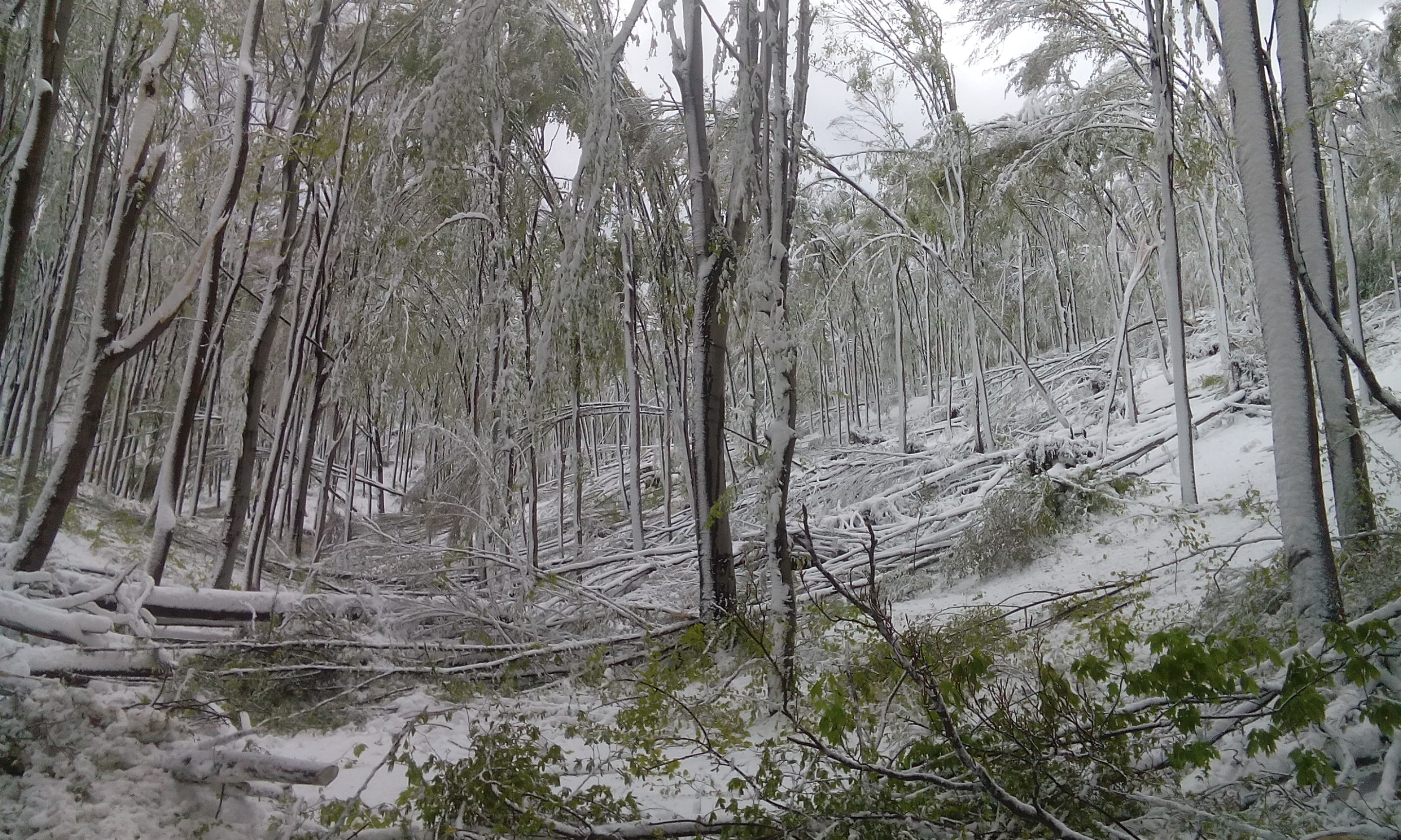 A vizes hó jobban megtapadt a kilombosodott fák ágain, melyek a nagy terhelés alatt letörtek. A folyamatos havazás okozta hatalmas súly miatt gyökerestől fordultak ki a fák, néhol egész erdőrészek dőltek le.