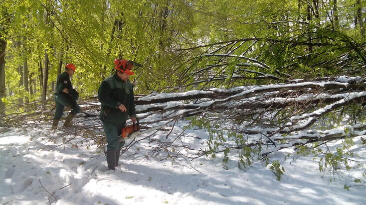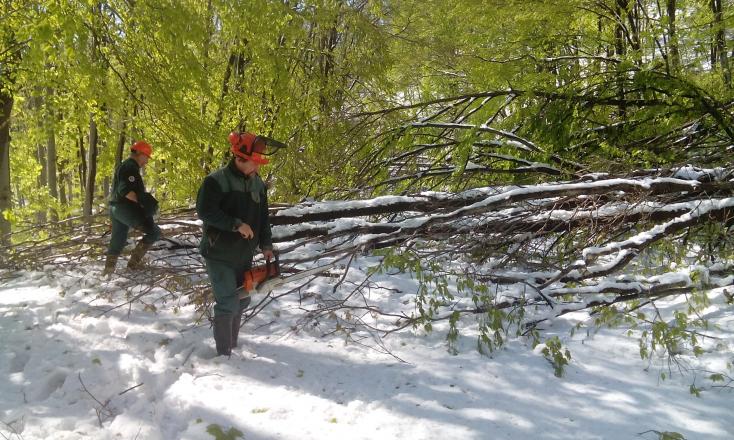 Április 20-án reggel a Katasztrófavédelem a Természetvédelmi Őrszolgálat segítségét kérte a rendkívüli helyzet megoldásában. Igazgatóságunk munkatársai napokon keresztül, megfeszített erővel vettek részt a kárelhárítási mukálatokban és az utak szabaddá tételében.