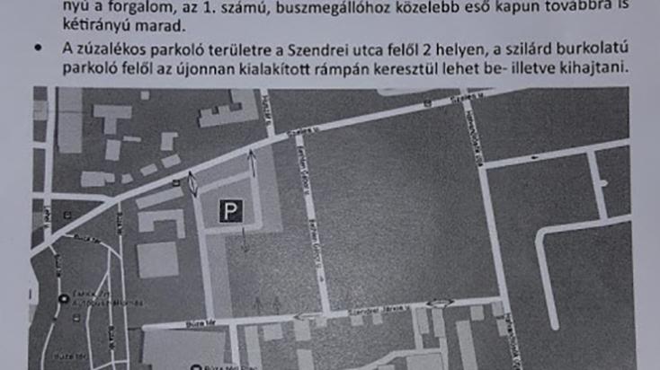 A zúzalékos parkoló területe a Szendrei utca felől 2 helyen, a szilárd burkolatú parkoló felől az újonan kialakított rámpán lehet be és kihajtani.