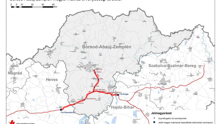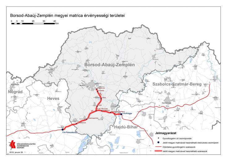 A megyei térképek a megye közigazgatási határán belül húzódó gyorsforgalmi úthálózatot ábrázolják, a díjköteles gyorsforgalmi úthálózatot minden esetben piros vonal jelzi, a díjfizetés nélkül használhatót pedig zöld.