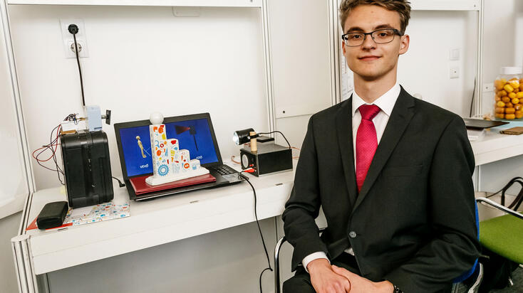 • Tassi Timián Áron (Miskolci Herman Ottó Gimnázium) „Okoslámpa” c. pályázata. A versenyző olyan lámpát tervezett és készített, amivel nem csak a látható fényt, hanem hang információt is el lehet juttatni jól körül határolt helyekre. Működése a LED fény hangfrekvenciával történő modulációján alapul.