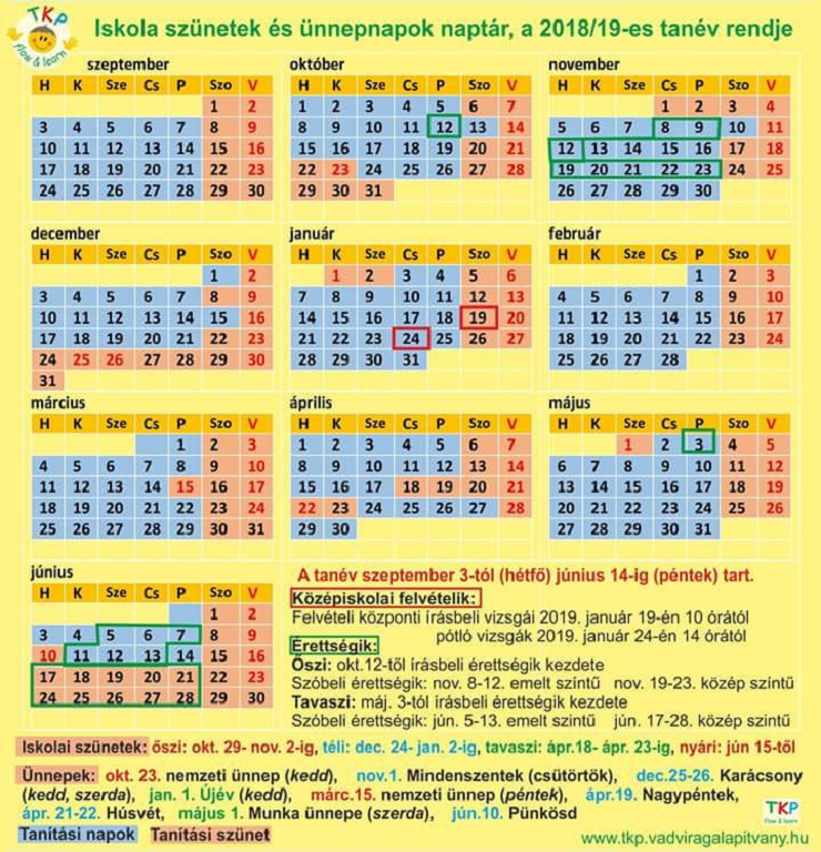 Hamarosan becsengetnek. A Magyar Közlönyben most jelentek meg a tanévre vonatkozó fontosabb dátumok. Ezeket gyűjtöttük csokorba. A tanév 2018. szeptember 3-án, hétfőn kezdődik, az utolsó tanítási nap pedig 2019. június 14-én, pénteken lesz, vagyis jövőre még biztosan nem lesz hosszabb a tanév - derül ki a 2018/2019-es tanév rendjéről szóló rendeletből. A tanítási napok száma 181, a szakgimnáziumokban 179, a gimnázumokban és a szakközépiskolákban 180, ennyiszer kell iskolába menni szeptember és június között.