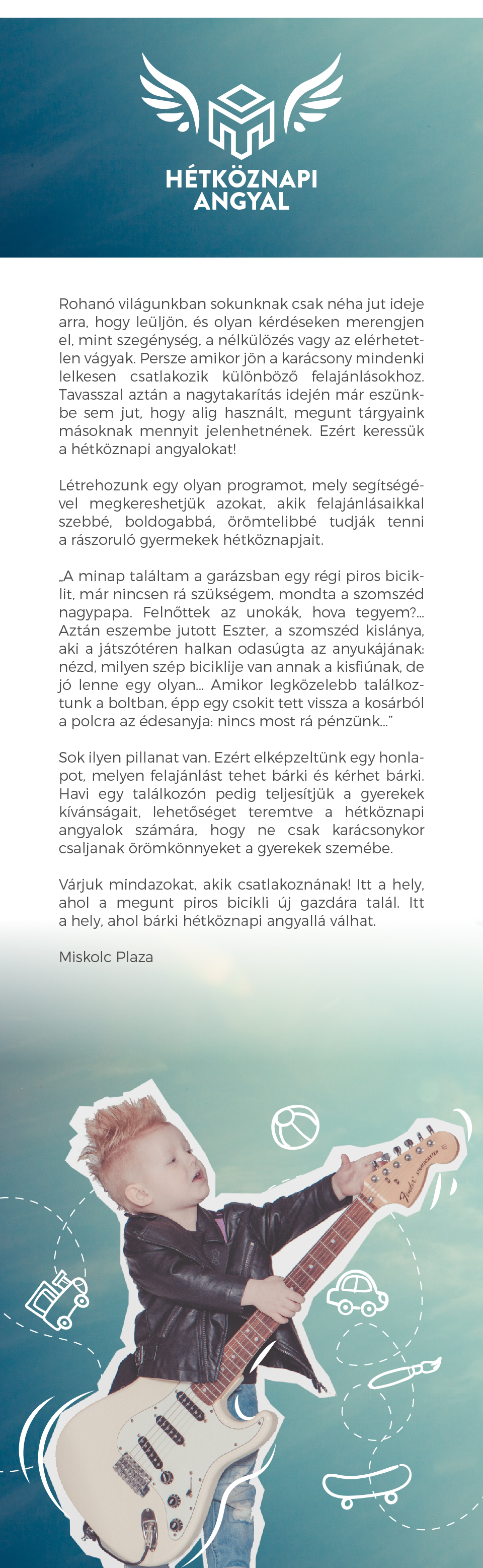 Az iskolakezdési támogatásokra koncentrál a Hétköznapi angyal szeptemberi támogatói programja. Bár csak egy kérést teljesít vállalása szerint a Miskolc Pláza havonta, ebben a hónapban négy gyerek is kap művészeti csomagot. A Munkácsy Mihály Általános Iskola diákjait segíti ezzel két támogató – három elsős és egy negyedikes kisdiák veheti át a rajzeszközökkel, festékekkel teli pakkot. Rajztanáruk kérte számukra a segítséget, amivel a rászoruló tanulók számára fontos a művészeti képzés, ebben a műfajban tudnak fejlődni. A támogatásokat nyilvánosan szeptember 12-én szerda délután négy órakor vehetik át a gyerekek a Miskolc Plázában. A programról részletesebben a hetkoznapiangyal.hu oldalon tájékozódhatnak!