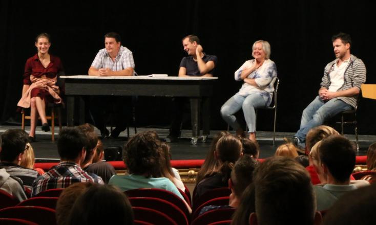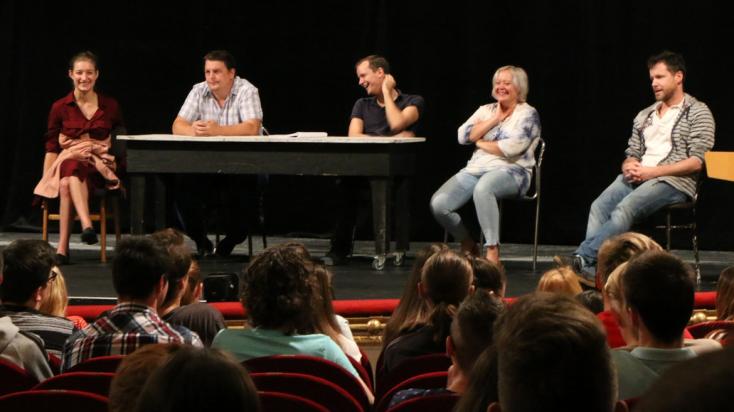 Az olvasás fontossága, az Édes Anna politikai, történelmi háttere, a főszereplők érzelmi világa, az író, mint narrátor szerepe az előadásban - mindezen érdekességekről mesélt Rusznyák Gábor a Nagyszínházba érkező fiataloknak a miskolci színház készülő új bemutatója kapcsán. Az előadás rendezője és a színpadi adaptáció készítője a gyakorlatban is megmutatta a diákoknak, hogyan készül egy regényből színpadi átirat.