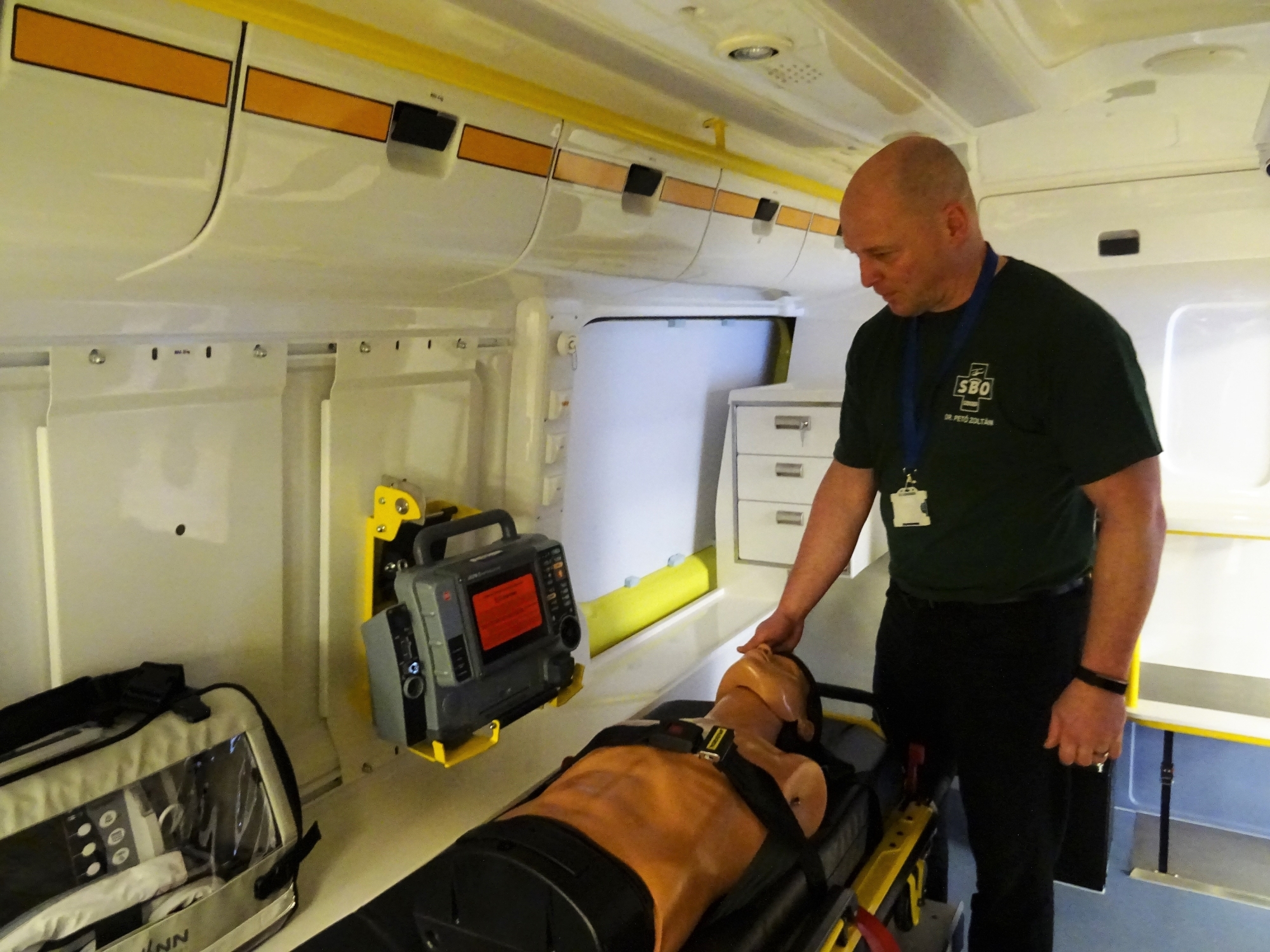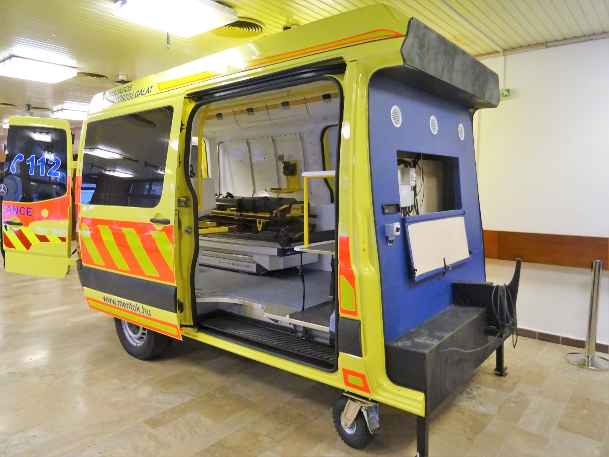 A mentőautó-szimulátort a Szegedi Tudományegyetem Általános Orvostudományi Kar (SZTE ÁOK) Szent-Györgyi Oktatási Épület aulájában adták át Prof. Dr. Lázár György, az SZTE ÁOK dékánja, Dr. Pető Zoltán, a Szegedi Tudományegyetem Szent-Györgyi Albert Klinikai Központ Sürgősségi Betegellátó Önálló Osztály vezetője, Dr. Zentay Attila, az Országos Mentőszolgálat regionális igazgatója és Prof. Dr. Boros Mihály, az SZTE ÁOK Orvosi Készségfejlesztő Központ igazgatója jelenlétében. A Skills Központ bejárata mellett elhelyezett mentőautó-szimulátor a helyszínre vonuló mentőautók pontos mása. A Mercedes-vázra épített 48.8 millió forint értékű oktatási rendszer eszköztára teljesen megegyezik a jelenleg használt és az utakon futó autókéval.