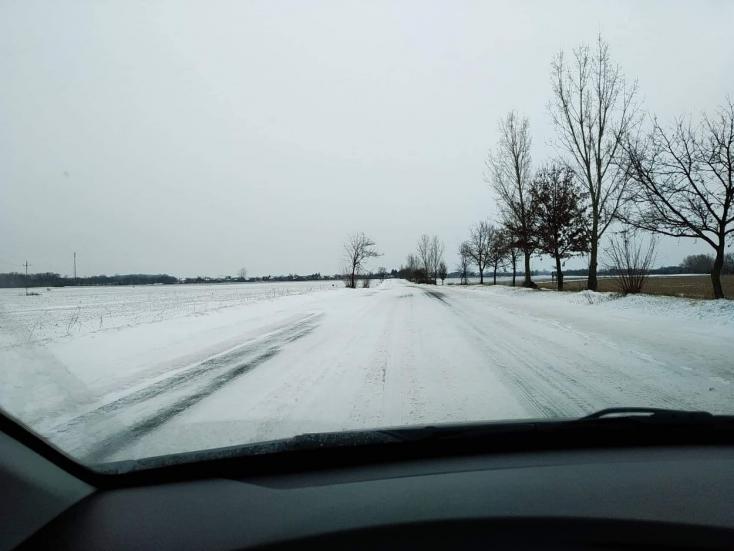 A Dunántúlon és az északi országrészben egyelőre csapadékmentes az idő. A Duna-Tisza közén, és a Tiszántúlon változó halmazállapotú csapadék esik. Bács-Kiskun, Jász-Nagykun-Szolnok, Csongrád, Békés és Szabolcs-Szatmár-Bereg megyében havazik, vagy szállingózik a hó. A gyorsforgalmi utak burkolata többnyire sónedves, az M1-es lébényi és komáromi szakasza száraz, ugyan úgy mint az M7-es balatonvilágosi és martonvásári szakaszai, valamint az M0-s autóút északi szektora.
