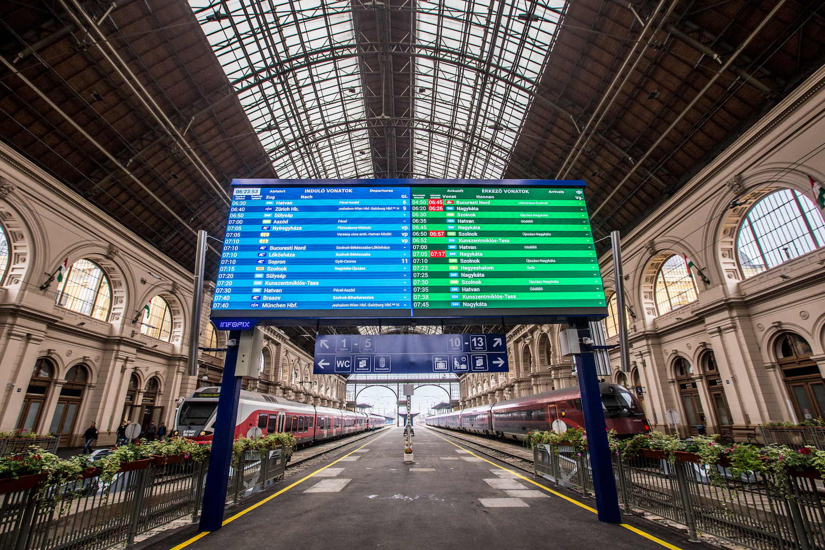 A korábbi periodikus frissítés helyett azonnali változásokat is tud követni a Keleti pályaudvar új, az induló- és érkezővonatokat kijelző táblája. A 3x8 méteres LED fal május 27-étől segít az utastájékoztatásban.