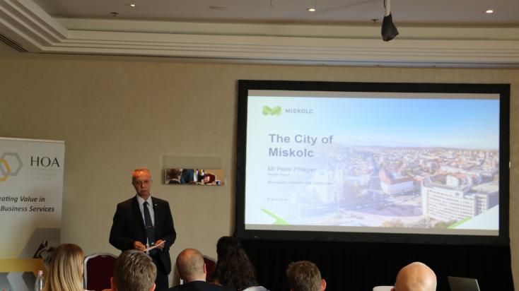 Szélyes Domokos, a Miskolc Holding Zrt. elnöke elsősorban az új cégek számára biztosított háttér-infrastruktúrát, illetve az önkormányzati beruházásban megvalósuló fejlesztéseket mutatta be. Ismertette az előkészített irodaház-fejlesztési terveket, illetve a városi bérlakás-fejlesztési programot, többek között a belvároshoz közeli 20 emeletes toronyház rekonstrukcióját, amelyben 2021-re 114 bérlakást alakítanak ki.