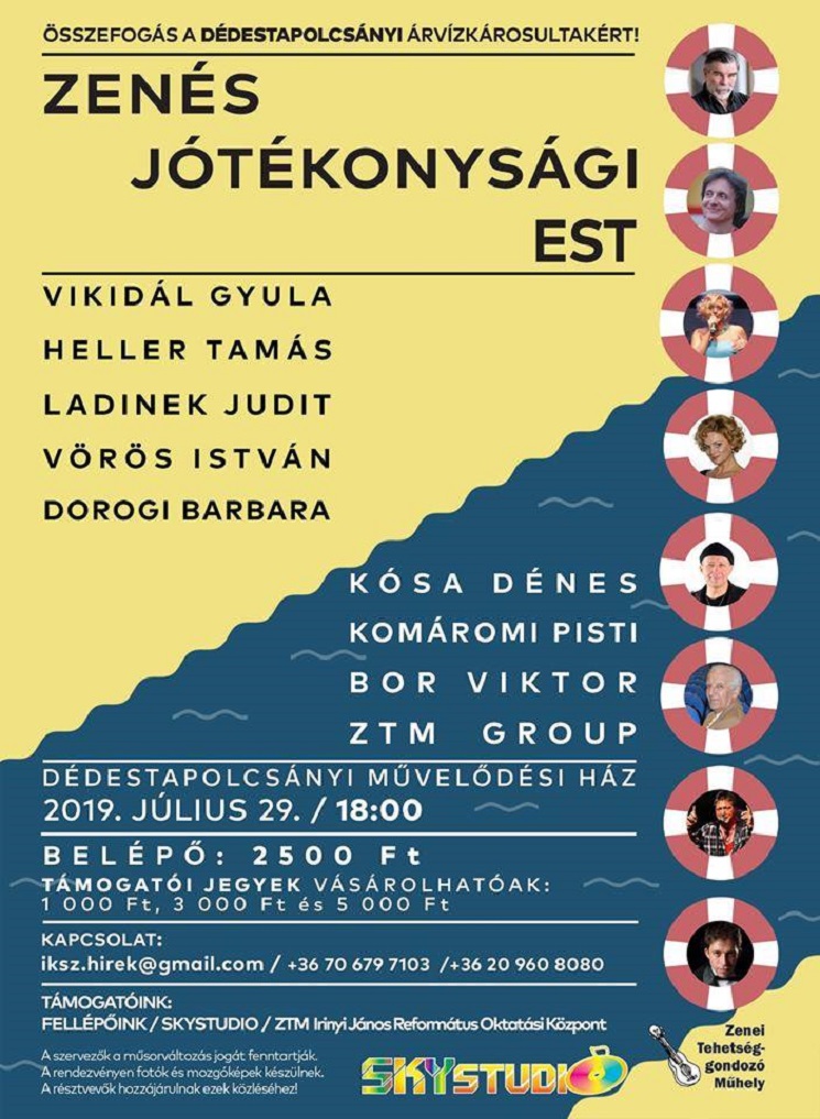 A látvány és a hírek segítségnyújtásra ösztönöztek rengeteg jóérzésű embert. Adományok érkeztek a helyiektől bútorok és háztartási eszközök formájában, és a hivatalos keretek között életre hívott közalapítvány számlájára is folyt be némi támogatás. Ám a kár olyan nagymértékű, hogy további segítségre van szüksége a településnek. A szomorú hírek hallatán szinte egyidőben mozdultak a segítségnyújtás irányába budapesti előadóművészek, kazincbarcikai fiatalok, helyi önkéntesek és a településről elszármazott segíteni szándékozók. Önkéntes összefogásuk, a földrajzi távolságokat áthidalva is eredményhez vezetett. Olyan példaértékű és nem mindennapi összetartásról tanúskodó rendezvénynek ad otthont a helyi művelődési ház július 29-én, amilyent a festői szépségű Dédestapolcsányban még nem láttak!