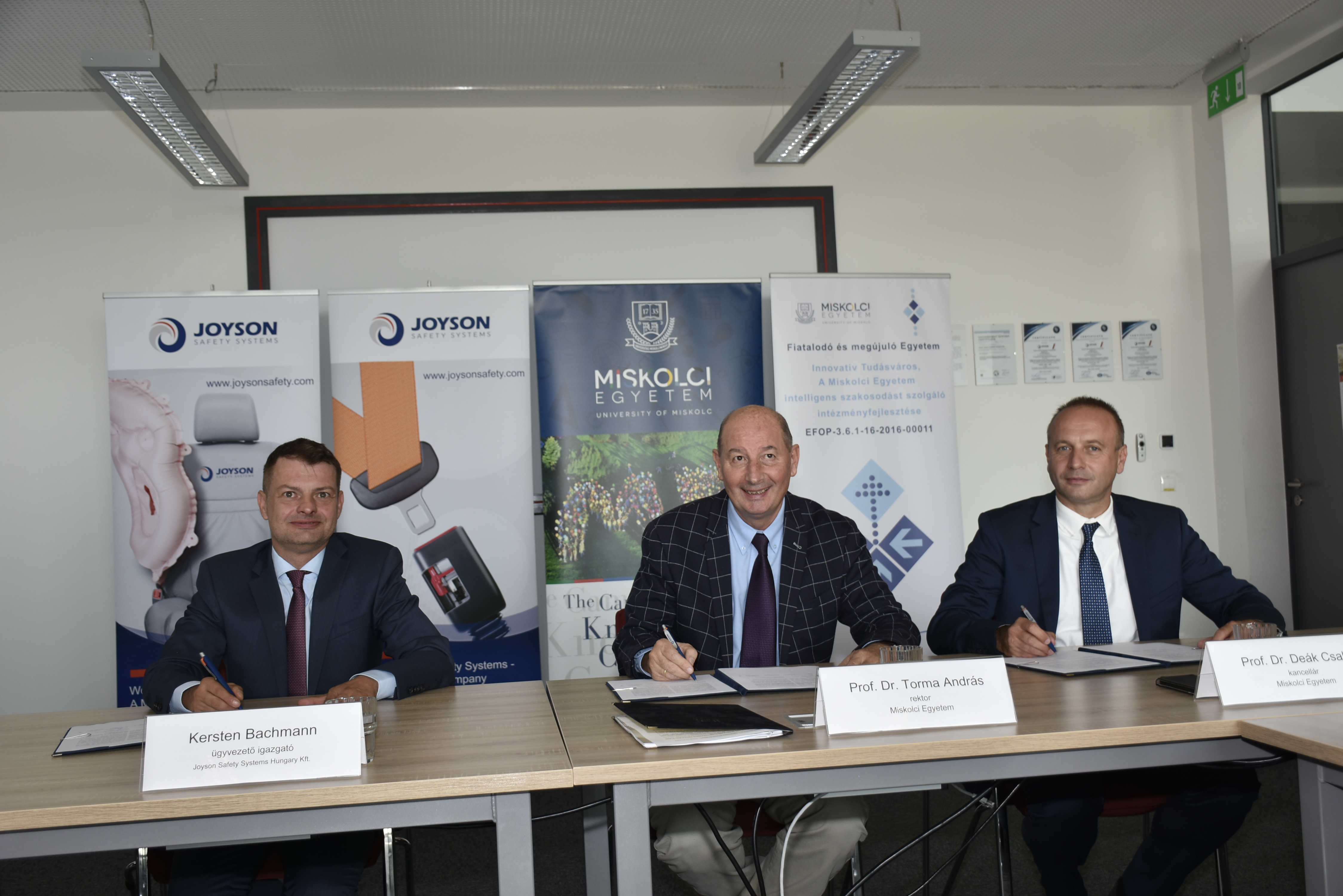 2019. szeptember 11-én Prof. Dr. Torma András, a Miskolci Egyetem rektora és Prof. Dr. Deák Csaba az egyetem kancellára együttműködési  megállapodást írtak alá a Joyson Safety Systems Hungary Kft. ügyvezetőjével, Kersten Bachmann-nal. A stratégiai megállapodás valójában egy már meglévő együttműködés és partnerség megújítása, hiszen a cég már évek óta duális képzési partnere a Miskolci Egyetemnek.