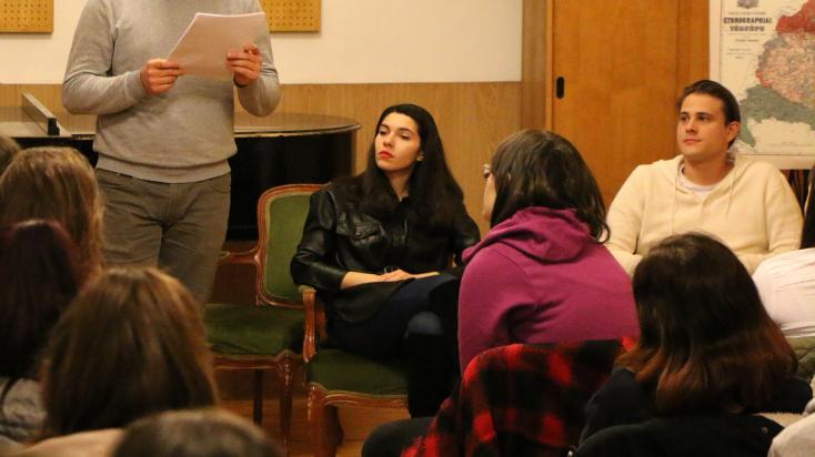 – Egy étteremben is akkor lehet jó spárgalevest enni, amikor spárgaszezon van; egy előadást is akkor lehet jól megrendezni, amikor a színészek beértek rá. Ez pedig nálunk most jött el – részletezi Szőcs Artur. Lajos András Veliszavljevics Dusánt alakítja, akinek felesége, Irina (Czvikker Lilla) és egyik legjobb barátja, a magyar főszolgabíró, Péterházy Géza (Bodoky Márk) titokban egymásba szeretnek. A szerelmi háromszög mellett az előadás hitelesen tud mesélni a trianoni békediktátum eseményeiről, körülményeiről. Lajos András színművész Apponyi Albert gróf delegációvezető 1920. január 16-i trianoni beszédének egy részletét olvasta fel a diákoknak. Bodoky Márk részletesen ismertette az előadás történetét, Czvikker Lilla pedig arról mesélt, milyen hasonlóságokat vélt felfedezni karaktere és önmaga között.