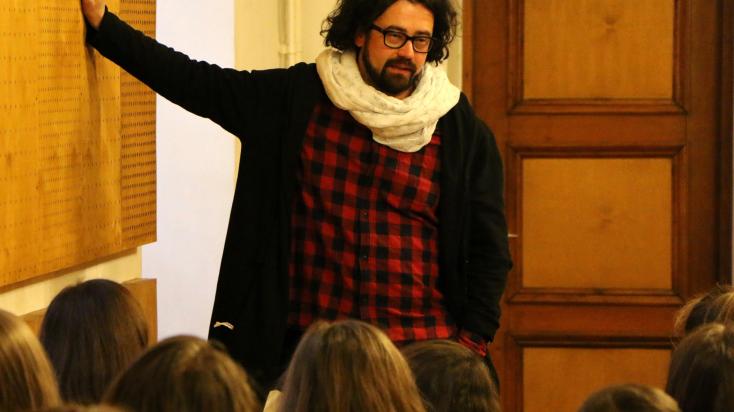 – Ez az előadás találkozások sorozatából valósulhatott meg – osztja meg Szőcs Artur a fiatalokkal. Mesélt az író, Hunyady Sándor kolozsvári gyermekkoráról, valamint arról, hogy saját első színházi élménye is ehhez a városhoz kötődik. – Ez volt az első találkozás. A másik a Söndörgő együttessel való kapcsolatom, akiket fiatalkoromban ismertem és szerettem meg. Valamit megpendítettek bennem, a tambura zenekarokhoz már ekkor elköteleződtem – mondja a rendező, majd hozzáteszi, Hunyady művével is fiatalon találkozott először, amelyben pont olyan délszláv dalok vannak, melyek annyira közel állnak a szívéhez, és már ekkor megfogalmazódott benne, hogy egyszer szeretné megrendezni ezt a darabot. A miskolci előadást a Babra zenekar élő muzsikája színesíti.