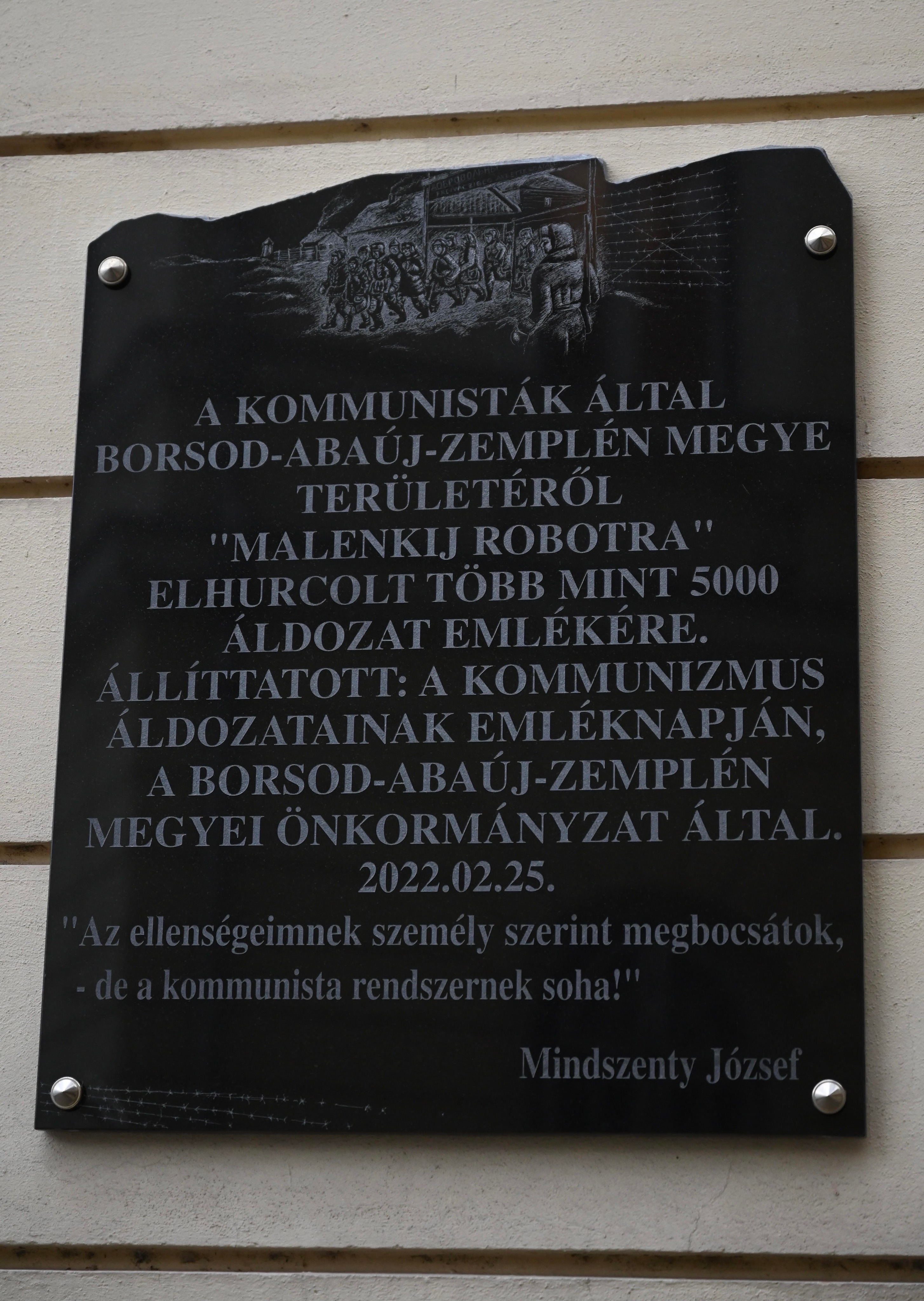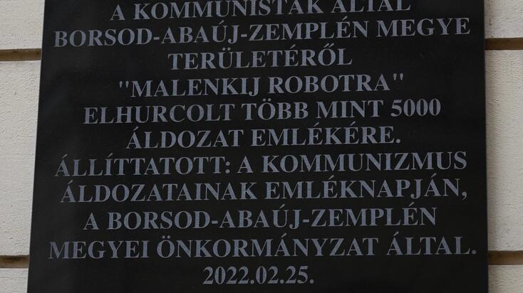 2022. február 25-én a Borsod-Abaúj-Zemplén Megyei Önkormányzat táblaavatással kívánt megemlékezni és tisztelegni az 1944-től a megye területéről szovjet munkatáborokba elhurcolt több mint 5000 áldozat emléke előtt.