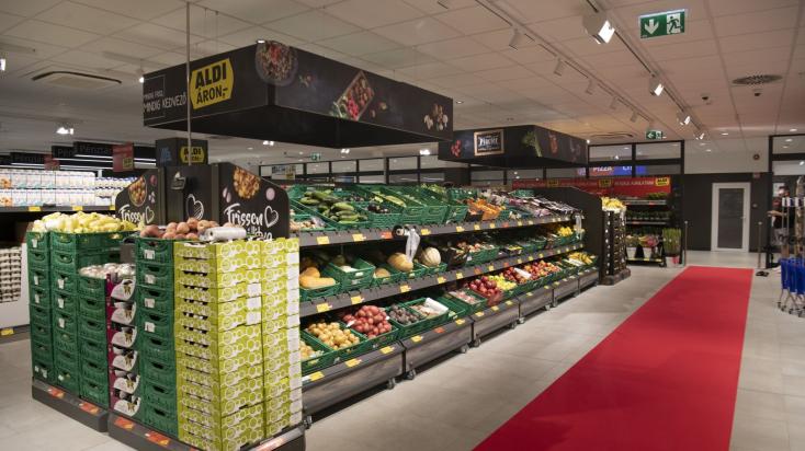 Az áruházban az élelmiszer és nem-élelmiszer jellegű termékek széles köre megtalálható. Az ALDI legújabb dizájnja szerint elkészített belső térben hangsúlyos helyen áll a zöldség-gyümölcs pult, amelyben mintegy 120 féle friss, jellemzően magyar forrásból származó zöldség és gyümölcs várja a vásárlókat. Az áruházlánc frisshús-kínálatának állandó tagjai 100%-ban magyar tartásból, vágásból és feldolgozásból kerülnek a polcokra – a modern üvegajtóval ellátott húshűtők pedig tovább csökkentik az energiafelhasználást. A vásárlók már 60 féle friss szárnyas-, sertés- és marhahús közül választhatnak, amelyek között GMO-mentes termékek is megtalálhatók, és amelyekből minden nap érkezik friss kínálat az üzletbe. A tejes és felvágottas hűtőpultokban közel 20 féle kolbász és szalámi, mintegy 100 féle felvágott, májas és bacon található. A vállalat 65 alapvető tejterméke és valamennyi tojás – a friss húsokhoz hasonlóan – kizárólag magyar forrásból származik, így a vásárlók biztosak lehetnek abban, hogy friss, hazai termék kerül a kosarukba, és a magyar gazdaságot támogatják.