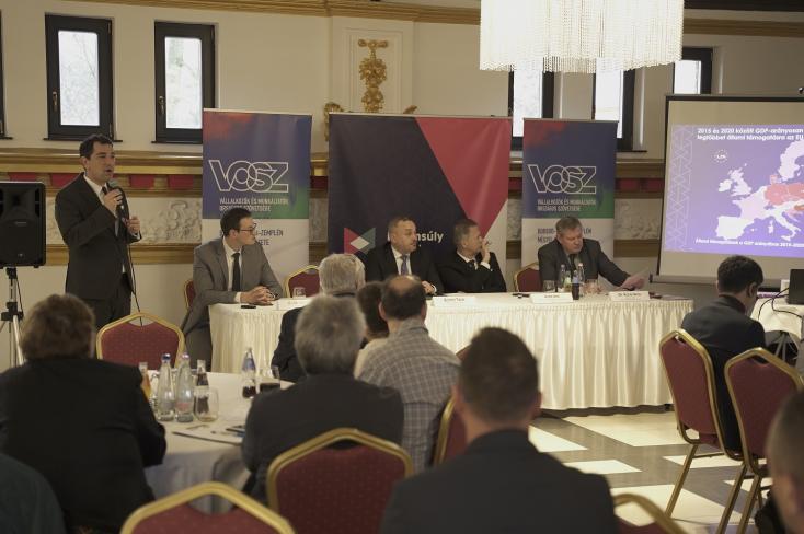 Boros Tamás, az Egyensúly Intézet igazgatója előadásában a hazai vállalkozásfejlesztés-politika jellegzetességeiről beszélt. Az agytröszt most zajló kutatásának részeredményeit bemutató prezentációjából kiderült, hogy „Magyarországon nemzetközi összehasonlításban is kiemelten nagy hangsúlyt kap az állami támogatáspolitika. Ugyanakkor itthon sokkal jellemzőbb a külföldi tulajdonú vállalatok támogatása - ez különösen érvényes a legnagyobb összegű támogatásokra. A vállalkozásfejlesztés tanulsága az, hogy a támogatások pozitív hatása a vártnál kisebb mértékben gyűrűzik le a hazai tulajdonú kis- és középvállalkozásokhoz.” A megrendelések, a beszállítói, alvállalkozói rendszerek és a vállalati kultúra sem fejlődött, illetve nőtt olyan mértékben, mint azt a szakértők a korábbi évtizedekben remélték. A kkv-k közvetlen támogatásának egyik fő tapasztalata is az, hogy a termelékenység javult ugyan az elmúlt években, de még mindig nagyon alacsony mértékű, különösen az itt működő multikkal összevetve. Mindez ráadásul úgy is igaz, hogy az uniós és a hazai fejlesztési támogatások GDP-arányosan meglehetősen magasak