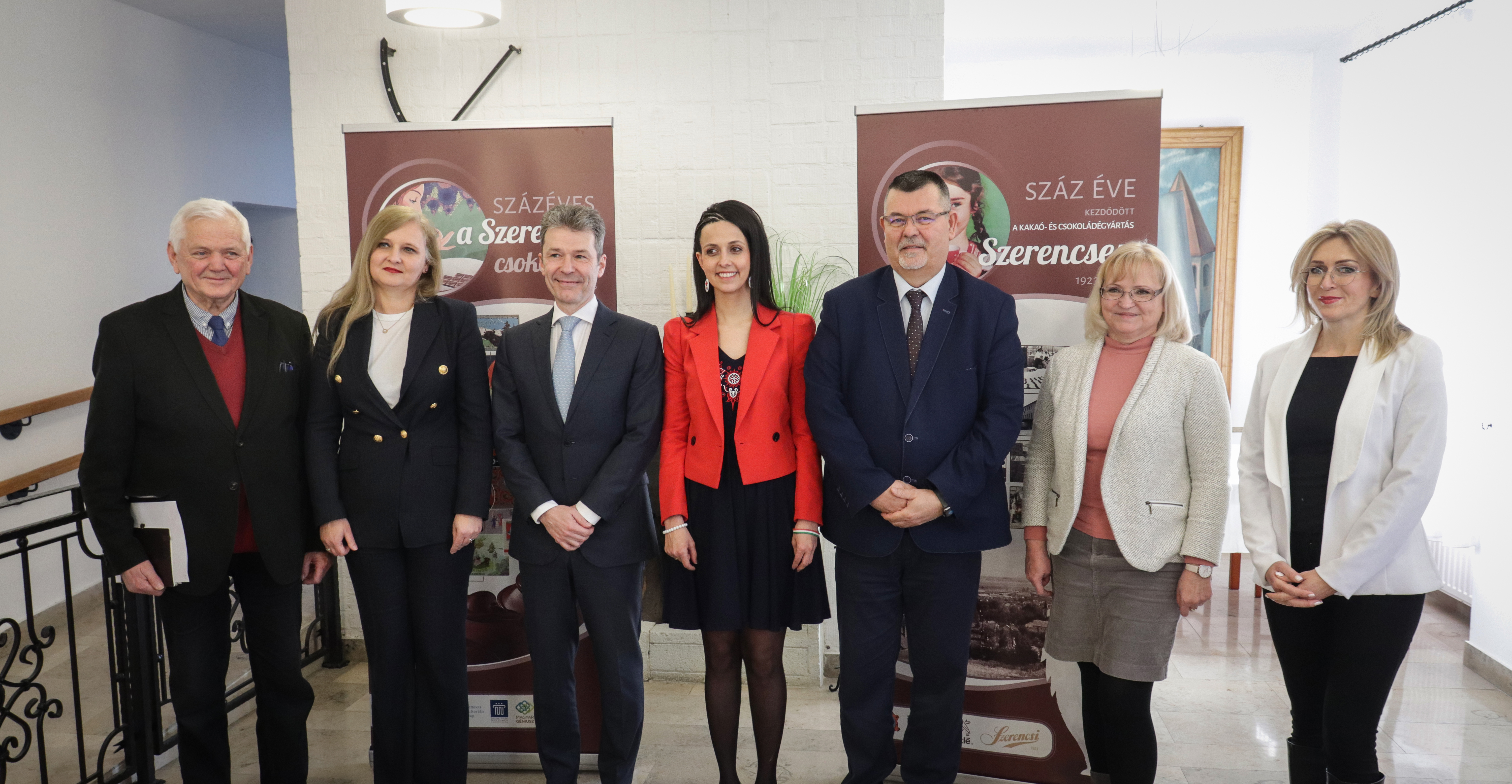 (A fotón balról jobbra: Dr. Takács István a Szerencsi Bonbon Kft. alapító-igazgatója, Lidia Wrońska a Nestlé Hungária Kft. szerencsi /diósgyőri gyárigazgatója, Noszek Péter a Nestlé Hungária Kft. ügyvezető igazgatója, dr. Koncz Zsófia a térség országgyűlési képviselője, miniszterhelyettes, Nyiri Tibor Szerencs polgármestere, Majoros Judit a Zempléni Múzeum igazgatója, dr. Végh Katalin, a Magyar Vidéki Múzeumok Szövetségének ügyvezetője, a Magyar Géniusz program koordinátora.)