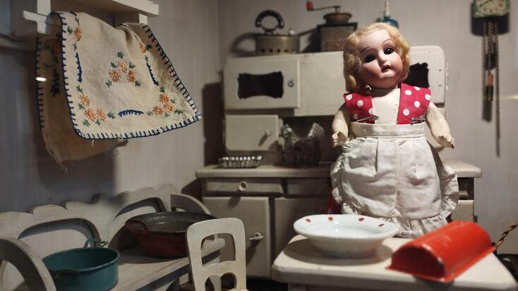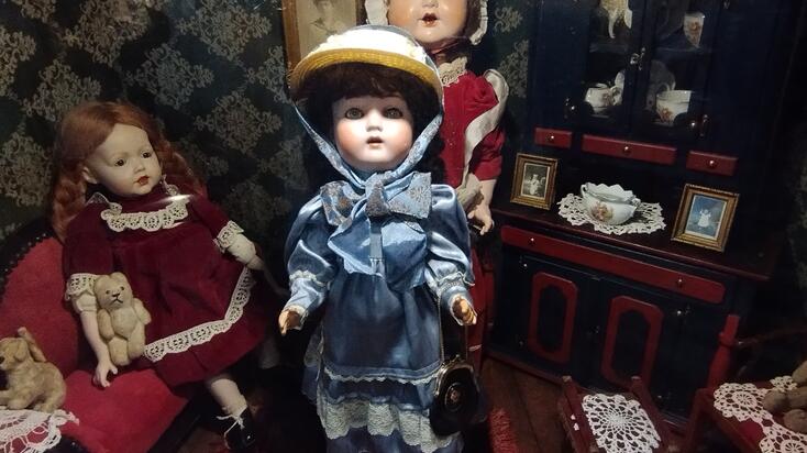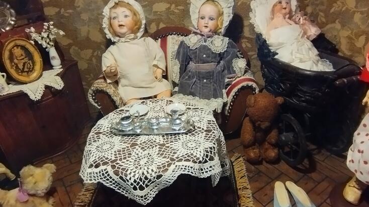 A míves készítésű babák mosolygós arcocskái porcelán és papírmasé babafejekre készültek, a pici, mozgatható szempárokat erdélyi üveghutákban fújt üvegből, az apró fogacskákat porcelánból készítették. A babákat körülvevő bútorok, az egykor a lakásokban is megtalálható hálóbútorok, konyhabútorok kicsinyített másai, megannyi aprósággal, angol porcelán teáskészlettel, konyhai eszközökkel, apró festményekkel, fotókkal, kakukkos órával és az egyik vitrinben kézzel csomózott szőnyeggel voltak kiegészítve. Egy csodálatos mesevilág tárult a látogatók szeme elé, amelyről Andrea nagy szeretettel és szakértelemmel mesélt az érdeklődőknek.