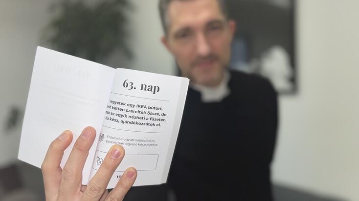 Egyre kevesebb házasság, egyre több esküvő nélküli együttélés, sokasodó válások. Az egymásnak tett holtomiglan-holtodiglan ígéret helyett sokan feladják, ha rögössé válik a közös út, vagy nehézzé a közös élet. Ám ha folyamatosan teszünk egymásért, figyelünk a másikra és kapcsolatunk megújítására, nem ér véget a közös lét. Erre hívja fel a figyelmet a február eleji Házasság Hete programsorozat és ennek a szellemiségében született meg Tóth Mihály lelkész „100 Napos Kaland Egymás Felé – Párnapló” című kötete. A házaspár mindkét tagjának egyszerre szóló, kapcsolatépítő színes feladatsor annak jegyében segít, hogy minden utazás egyetlen lépéssel kezdődik, így az elköteleződés is apró, tudatos pillanatokon keresztül bontakozik ki.