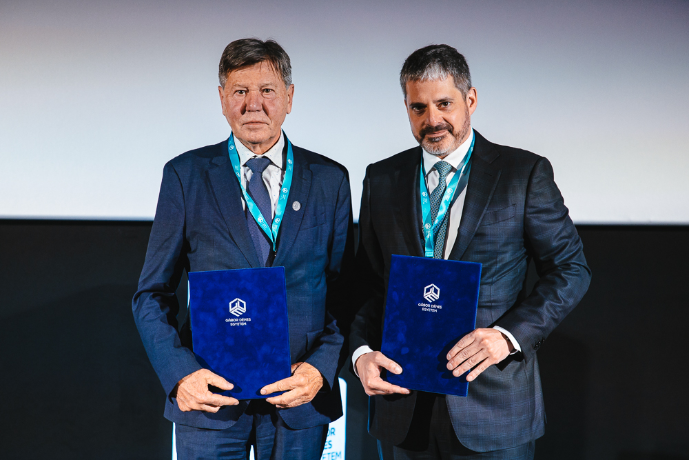 A Gábor Dénes Egyetem június 5-én megrendezett Mesterséges Intelligencia konferenciáján az együttműködésre vonatkozó szándéknyilatkozatot írt alá Csányi Péter, az OTP vezérigazgatója és Prof. Dr. Bokor József, a Gábor Dénes Egyetem Mesterséges Intelligencia Tudásközpont elnöke.