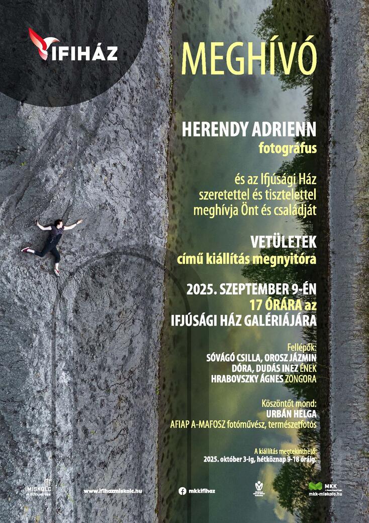 Herendy Adrienn fotográfus ”Vetületek” c. kiállításának megnyitóját 2025. szeptember 9-én kedden 17:00 órakor tartják az Ifjúsági Ház Galériáján.