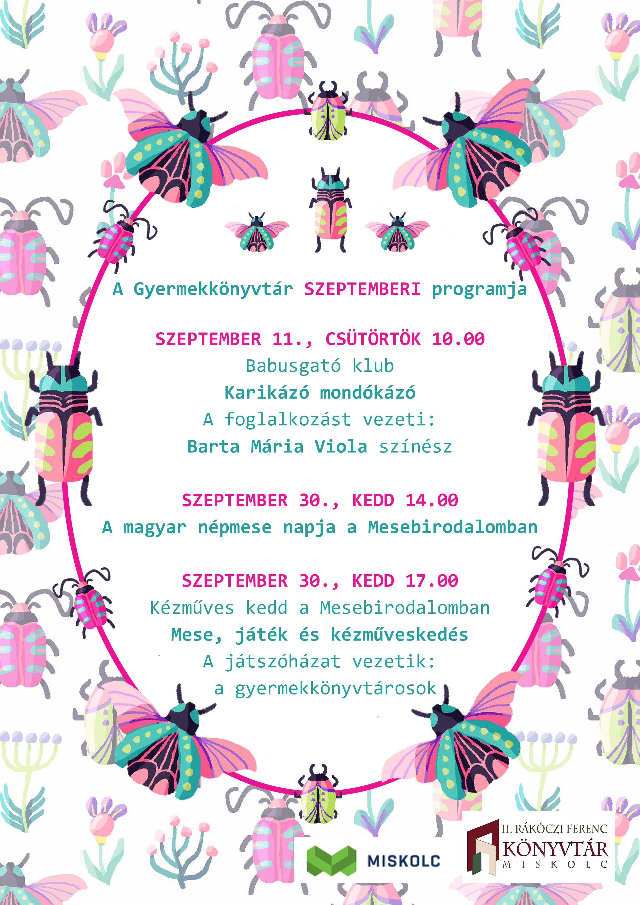 A Mesebirodalom következő két szeptemberi rendezvényével a magyar népmese napjához kapcsolódik. A szeptember 30-i, keddi programok Benedek Elek író, meseíró születésnapjához, a magyar népmese napjához kapcsolódnak A kora délután 2 órától kezdődő esemény során élőszavas mesélésben nem lesz hiány ezzel is erősítve a magyar népmese identitáserősítő szerepét. A mesélés után 5 órától már a kézműveskedésé lesz a főszerep. A gyermekkönyvtár munkatársai a Kézműves kedd című program részeként mesékkel, játékkal egybekötött kreatívkodásra várják a fiatalokat. Érdemes ellátogatni a II. Rákóczi Ferenc Könyvtár központi épületének gyermekkönyvtárába (Miskolc, Görgey u. 11.), hiszen mesés élményekkel gazdagodhatnak az érdeklődők.