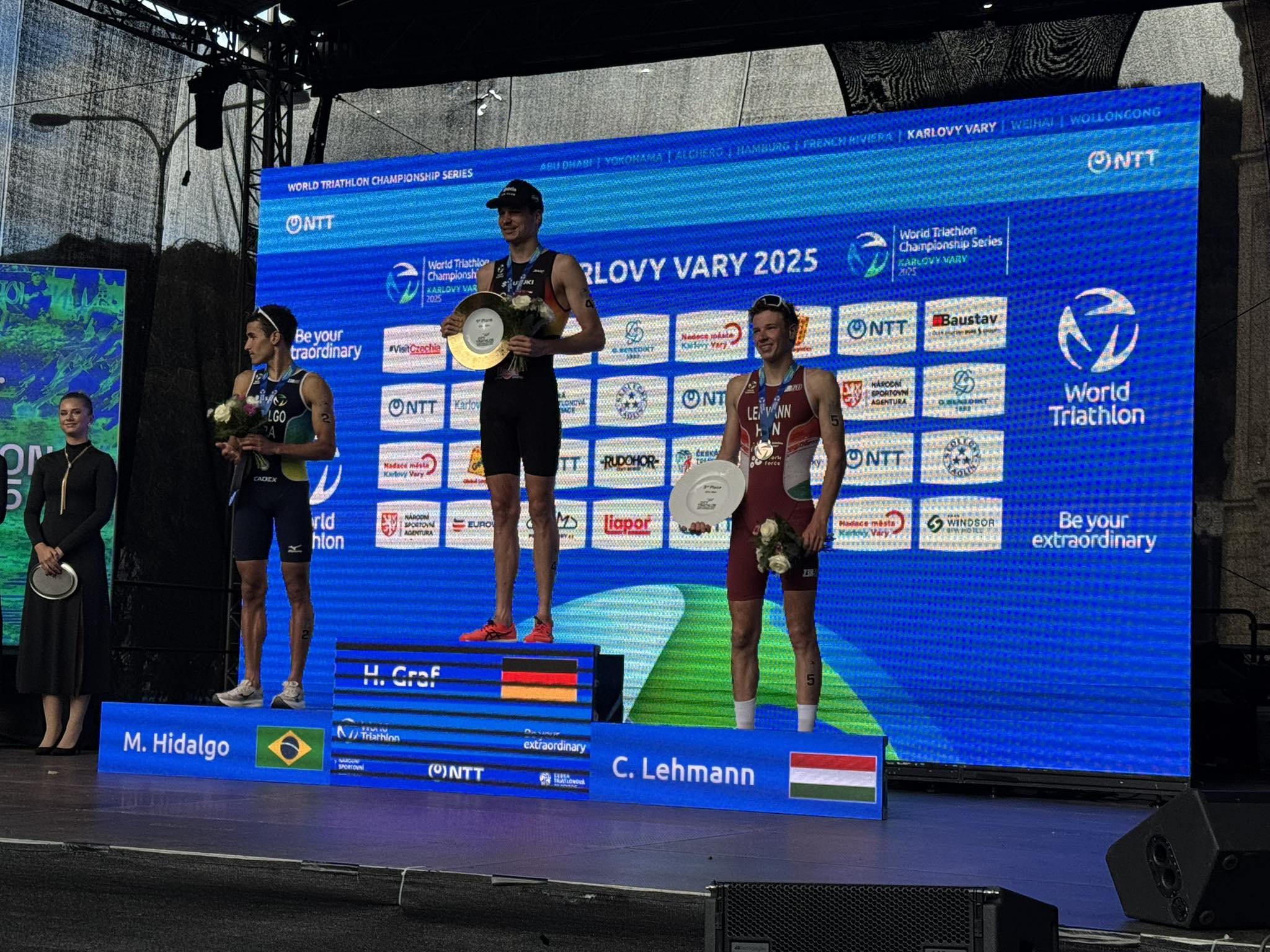 Fantasztikus versenyzéssel szerzett bronzérmet Lehmann Csongor a triatlonosok világbajnoki széria-versenysorozatának (WTCS) szeptember 14-én, vasárnap a csehországi Karlovy Vary-ban olimpiai távon megrendezett futamán.