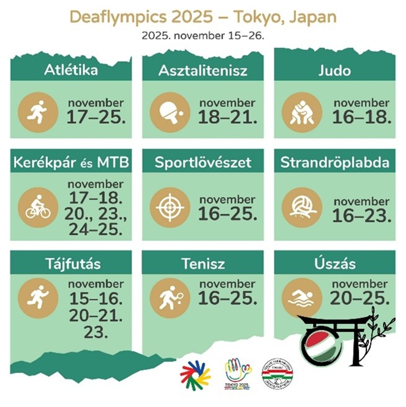 Javában zajlanak a XXV. Nyári Siketlimpia küzdelmei Tokióban, ahol a magyar csapat kiváló rajtot vett. A november 15–26. között megrendezett multisport-eseményen 24 magyar sportoló szerepel 10 különböző sportágban.