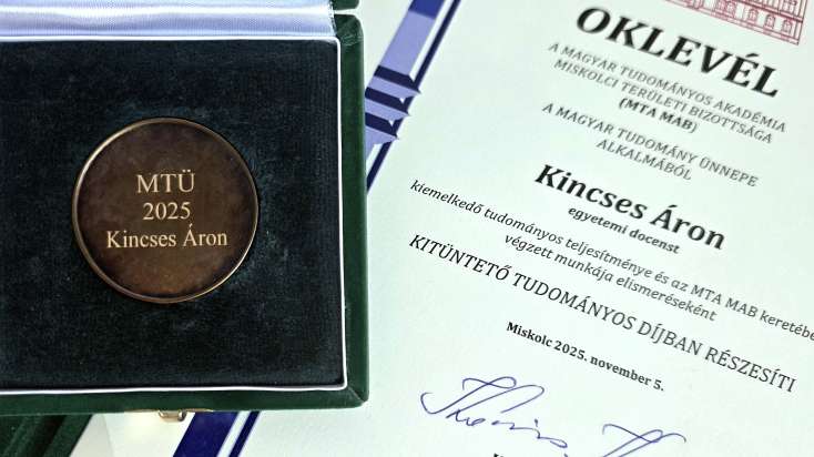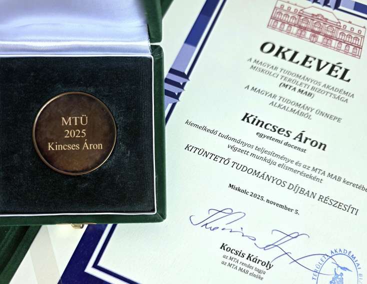 Az MTA Miskolci Területi Bizottsága 2026. február 23-án tartotta éves közgyűlését, amelynek keretében átadták a testület legmagasabb szintű elismeréseit. Dr. Kincses Áron, a Központi Statisztikai Hivatal elnöke, a Miskolci Egyetem docense Kitüntető Tudományos Díjat vehetett át, elismerésül kimagasló akadémiai tevékenységéért, valamint a régió tudományos életében betöltött meghatározó szerepéért.