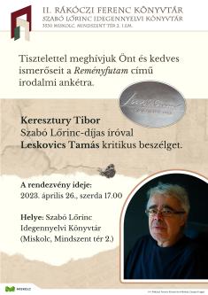 A hagyományoknak megfelelően a Szabó Lőrinc Idegennyelvi Könyvtárban (Miskolc, Mindszent tér 2.) idén is bemutatkozik az elmúlt esztendő Szabó Lőrinc-díjasa.