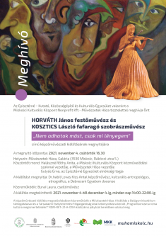 Az Episztémé Egyesület és a Miskolci Művészetek Háza együttműködésének keretében kerül megrendezésre Horváth János festőművész és Kosztics László fafaragó szobrászművész „Nem adhatok más csak mi lényegem” című képzőművészeti kiállítása.