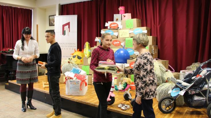 Advent első vasárnapjának hetétől advent harmadik vasárnapjáig várták a 0–18 éves lányoknak és fiúknak szóló ajándékokat a II. Rákóczi Ferenc Megyei és Városi Könyvtár központi épületében és fiókkönyvtáraiban. A könyvtárnak és az egyesület megyei szervezetének nem ez volt az első adománygyűjtése, de eddig csak a könyvtárosok hozzájárulását kérték – most először fordultak olvasóikhoz is. Az akció mottója az volt: Egy apró ajándék az ünnep. Ezért is az eredmény mindenkit kellemesen meglepett, sőt meghatott. Kaptak ugyanis apró ajándékot, egy-egy labdát, játékot – viszont nagyon sokat! És volt, aki egy csomagtartónyi játékot, ruhát, írószert, volt, aki felhívásban is megemlített pelenkát, és volt, aki televíziót, babakocsit, hintalovat adományozott.