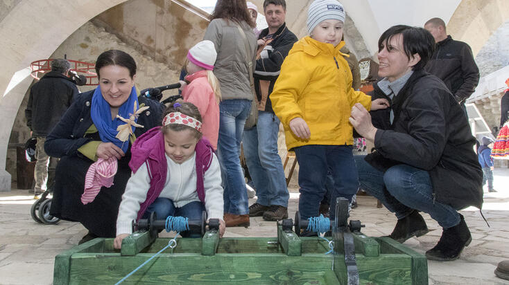 Ma már kevés helyen járnak a fiúk házról-házra locsolkodni, a lányok sem festenek piros tojást otthon, mégis fontos, hogy hagyományainkat továbbörökítsük és megtanítsuk ezek jelentését. A húsvét a kereszténység legnagyobb ünnepe, emellett több szálon kapcsolódik a tavasz megérkezéséhez, a termékenységgel összefonódó néphagyományokhoz, melyek a falusi közösségek örökségeként fennmaradtak, most pedig a Diósgyőri várban is ízelítőt kapnak belőle az érdeklődők. Mesélünk a szagos vizekről és a húsvéti hiedelmekről, részesei lehetnek vendégeink a locsolkodásnak, tojást festhetnek, nyuszit simogathatnak, beállhatnak a táncházba, megleshetik hogyan dolgozik a tojáspatkoló és rég elfeledett népi játékokkal mulathatják az időt, miközben bebarangolják a királynék várát.
