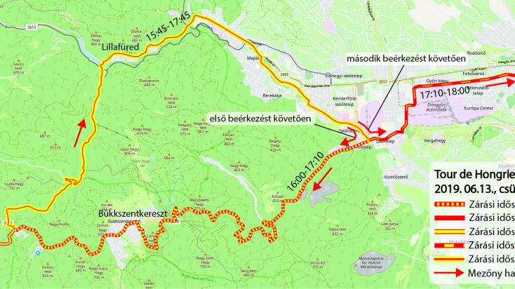 Útlezárásokra, forgalomkorlátozásokra és elterelésekre kell számítaniuk a miskolci autósoknak a 2019. június 13-án, 8:00 és 22:00 óra között a Tour de Hongrie kerékpárverseny ideje alatt.