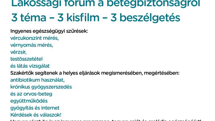 Betegbiztonság – Te is tehetsz érte! címmel országos lakossági kampány indult a Semmelweis Egyetem Egészségügyi Menedzserképző Központja közreműködésével, amelyben 20 településen, a szakértők oktatófilmek segítségével hívják fel a figyelmet arra, mit tudnak tenni maguk a betegek és hozzátartozóik a betegbiztonsági kockázatok csökkentéséért. A betegbiztonság több oldalról és valamennyi szereplőjének részvételével történő megközelítése az egészségügyi ellátás egész rendszerének minőségi javulásához járulhat hozzá.