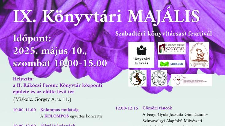 A II. Rákóczi Ferenc Könyvtár 2025. május 10-én, szombaton délelőtt 10 és délután 3 óra között 9. alkalommal rendezi meg a Könyvtári Majálist. A program célja a könyvtár, valamint a könyvek világának megismertetése és megszerettetése, a gyermekek olvasás iránti igényének felkeltése.