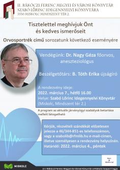 A Magyar Rákellenes Liga Miskolci Szervezetének közreműködésével egy újabb orvos portréját ismerhetik meg azok, akik 2022. március 7-én, hétfőn 16 órától ellátogatnak a Szabó Lőrinc Idegennyelvi Könyvtárba (Miskolc, Mindszent tér 2.).