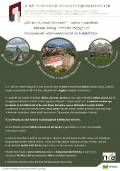 „Vár állott, most kőhalom” – várak nyomában Borsod-Abaúj-Zemplén megyében címmel helyismereti vetélkedősorozatot hirdet a megye középiskolás tanulói számára – a Nemzeti Kulturális Alap támogatásával – a miskolci II. Rákóczi Ferenc Megyei és Városi Könyvtár ....